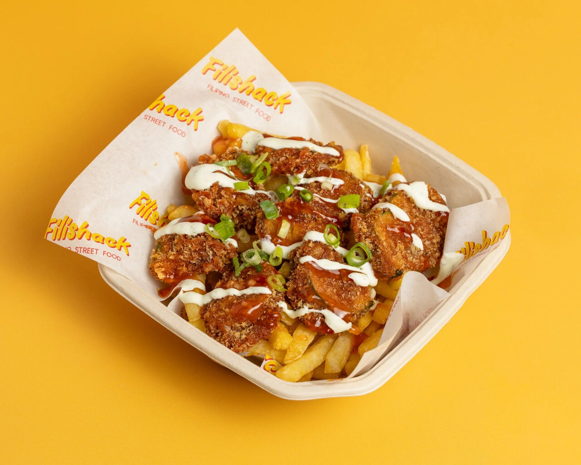 Perfectly seasoned fries crowned with succulent chicken simmered in savoury adobo flavours. Balanced with fresh salad and your choice of sauces for a Filipino twist on loaded fries.